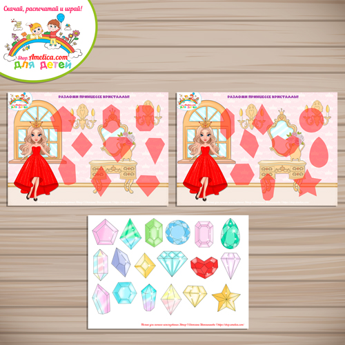 Игра на липучках — аппликация для малышей «Разложи принцессе кристаллы» скачать для распечатки