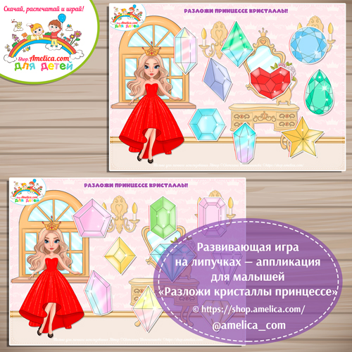 Игра на липучках — аппликация для малышей «Разложи принцессе кристаллы»