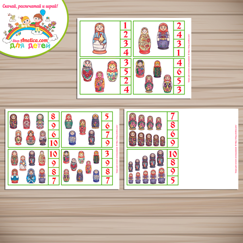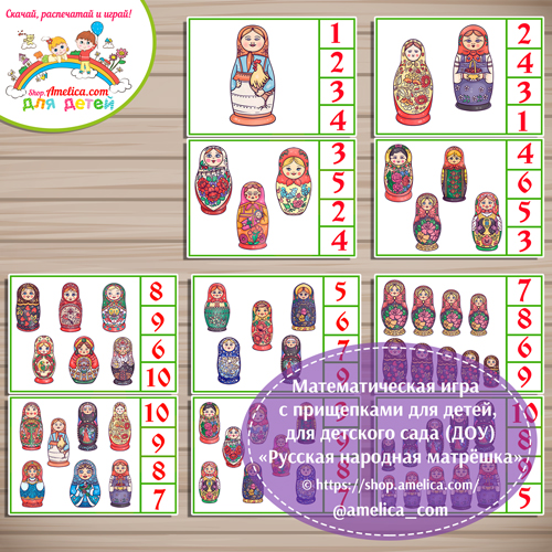 Математическая игра с прищепками «Русская народная матрёшка» для детей шаблон скачать для печати