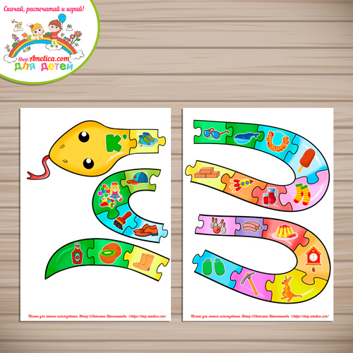 Логопедическая игра — пазлы для детей «Змейка» — Автоматизация мягкий звук Кь шаблон скачать для печати