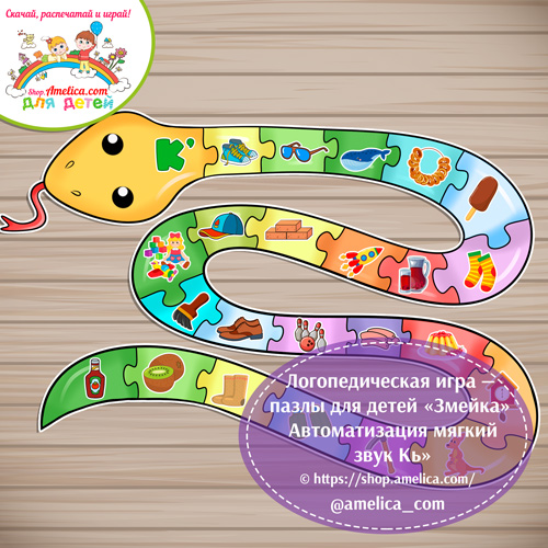 Логопедическая игра — пазлы для детей «Змейка» — Автоматизация мягкий звук Кь.