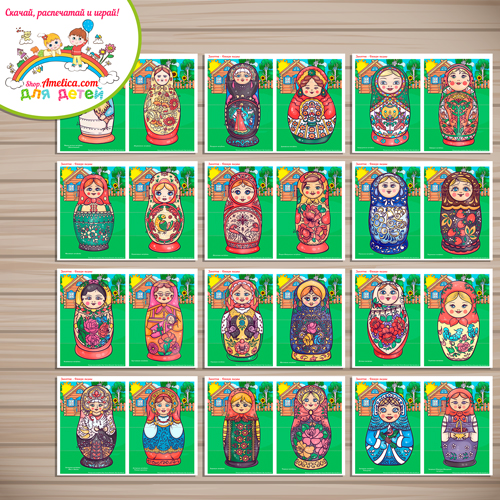 Дидактическая игра — пазлы для детей, для детского сада (ДОУ) «Русская народная матрёшка — 22 вида русской народной росписи» шаблон скачать для печати