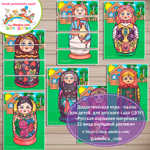 Дидактическая игра - пазлы для детей, для детского сада (ДОУ) «Русская народная матрёшка — 22 вида русской народной росписи».