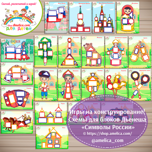 Игры на конструирование! Схемы для блоков Дьенеша «Символы России» шаблоны распечатать