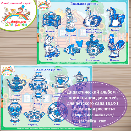 Дидактический альбом — презентация на липучках «Гжельская роспись (Гжель)» скачать для печати