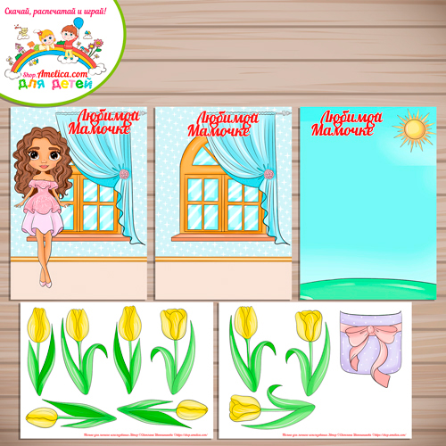 В наборе 5 листов в формате А4: фон в 3 вариантах на выбор, и 2 листа с элементами аппликации.