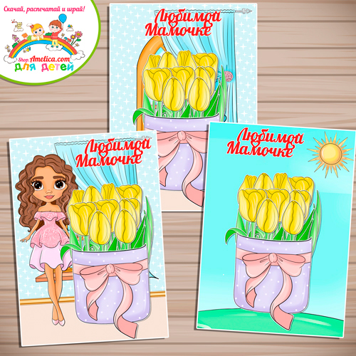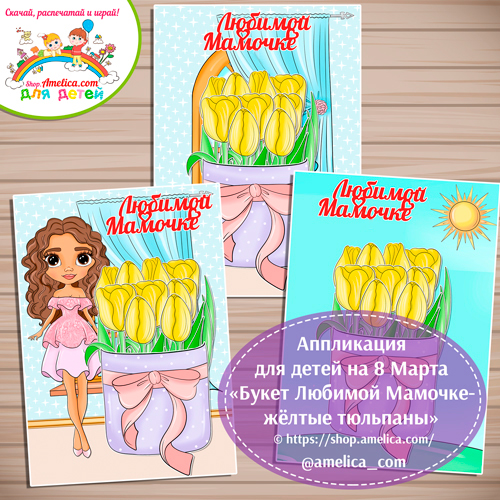 Аппликация для детей, открытка к 8 Марта «Букет Любимой Мамочке — жёлтые тюльпаны» для занятий дома или в детском саду.
