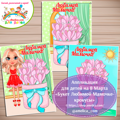 Аппликация для детей, открытка к 8 Марта «Букет Любимой Мамочке — крокусы» для занятий дома или в детском саду.