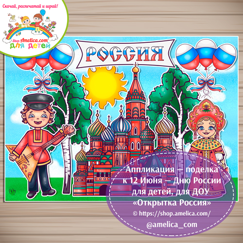 Аппликация — поделка к 12 Июня — Дню России для детей «Открытка Россия»-2