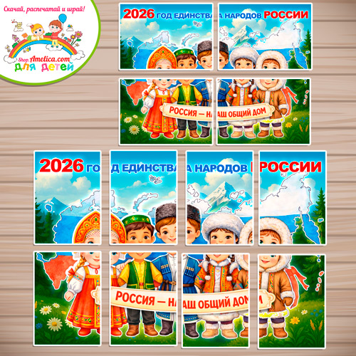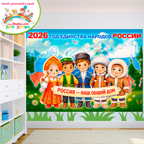 Баннер — оформление для детского сада (ДОУ) школы «2026 — Год единства народов России» шаблоны на 16, 8, 4 листах А4 скачать и распечатать