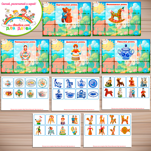 Игры по русской народной теме станут отличным обучающим материалом по лексической теме «Русские народные промыслы», «Русская народная роспись». Ребенок развивает кругозор и обогащает словарный запас, развивает мелкую моторику кисти, тренирует память и речь.