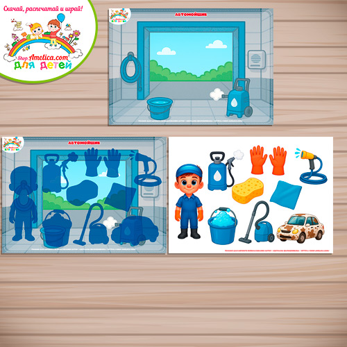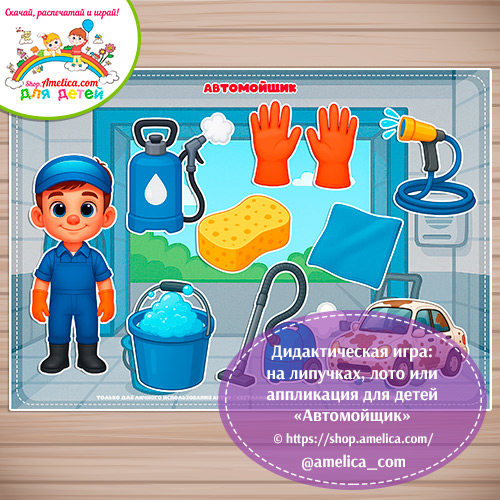 Дидактическая игра: на липучках, лото или аппликация для детей «Автомойщик» скачать для детей