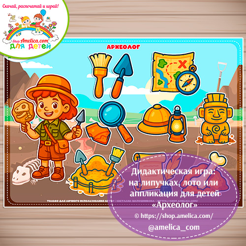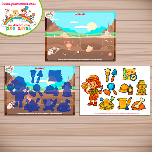 Дидактическая игра: на липучках, лото или аппликация для детей «Археолог» скачать для детей