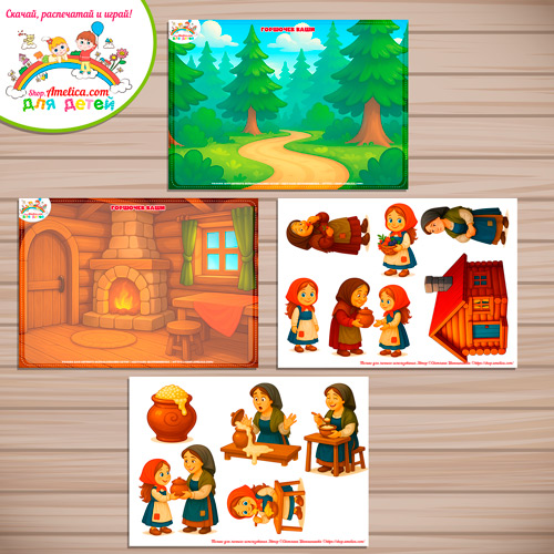 Почитайте ребенку сказку «Горшочек каши» и положите рядом фон и всех героев. Малышу очень понравится такой «кукольный театр», ведь слушать сказку и играть намного интереснее!