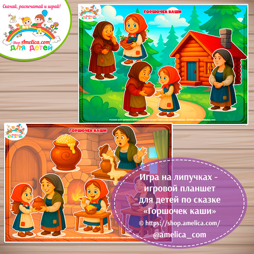 Дидактическая игра на липучках — игровой планшет для детей по сказке «Горшочек каши»Дидактическая игра на липучках — игровой планшет для детей по сказке «Горшочек каши»