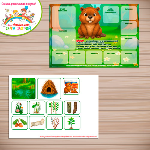 Дидактическая игра для детей на 7 Апреля — День Бобра «Животные леса — Бобр» скачать для печати
