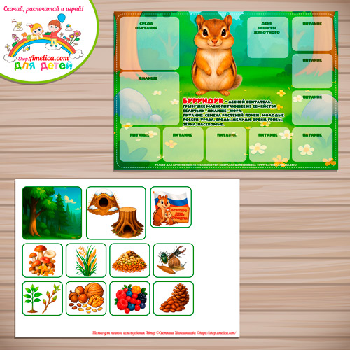 Дидактическая игра для детей на 6 Сентября — День Бурундука «Животные леса — Бурундук» скачать для печати