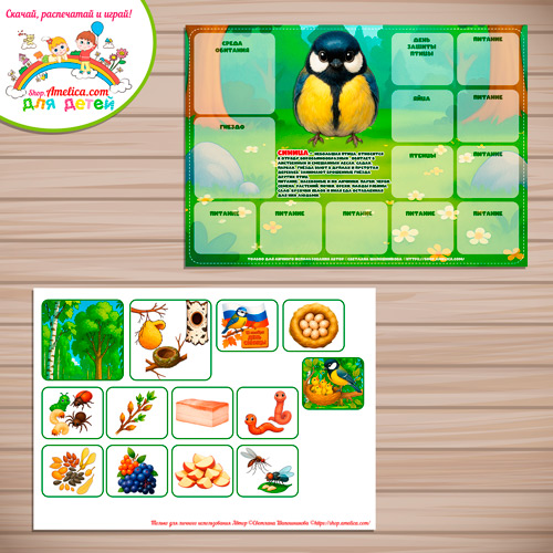 Дидактическая игра для детей на 12 Ноября — День Синицы «Птицы России — Синица» скачать для печати