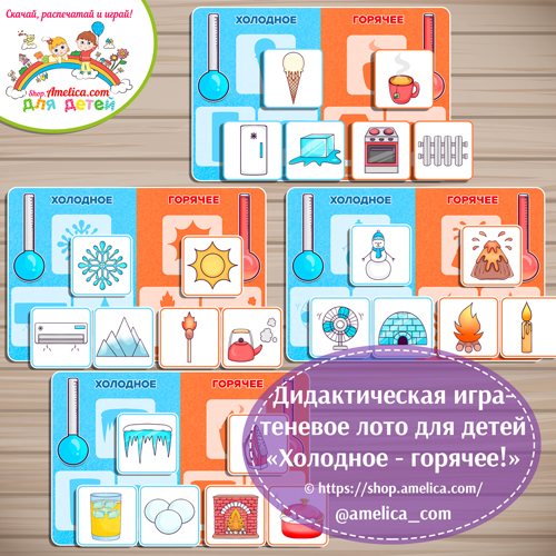 Дидактическая игра — теневое лото для детей «Горячее — Холодное» .