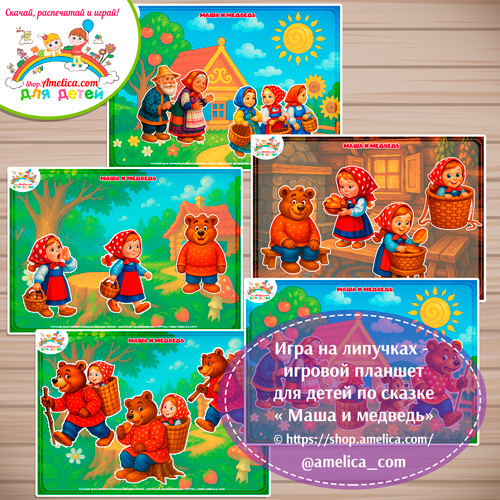 Дидактическая игра на липучках — игровой планшет для детей по сказке «Маша и медведь»Дидактическая игра на липучках — игровой планшет для детей по сказке «Маша и медведь»