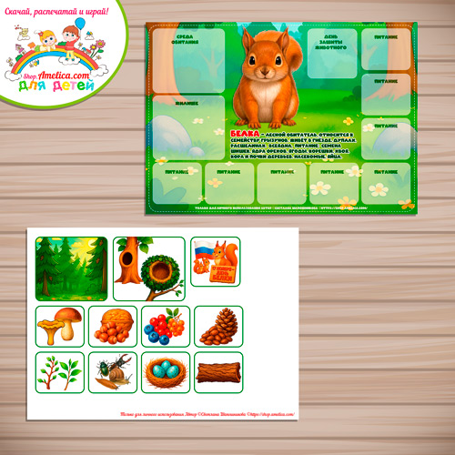 Дидактическая игра для детей на 17 Ноября — День Белки «Животные леса — Белка» скачать для печати