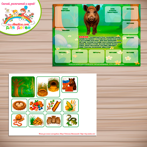 Дидактическая игра для детей на 1 Марта — День Кабана «Животные леса — Кабан» скачать для печати