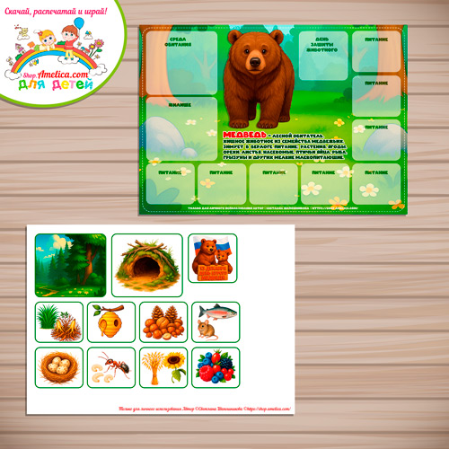 Дидактическая игра для детей на 13 Декабря — День Бурого медведя «Животные леса — Медведь» скачать для печати