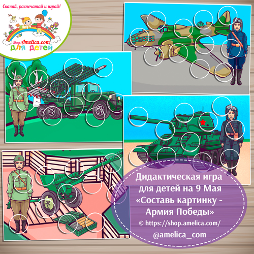 Дидактическая игра на липучках на 9 Мая — День Победы «Составь картинку: 9 Мая — Армия Победы!» шаблон скачать для печати