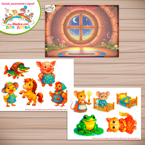 Почитайте ребенку сказку «О глупом мышонке» и положите рядом фон и всех героев. Малышу очень понравится такой «кукольный театр», ведь слушать сказку и играть намного интереснее!