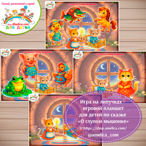 Дидактическая игра на липучках — игровой планшет для детей по сказке «О глупом мышонке»