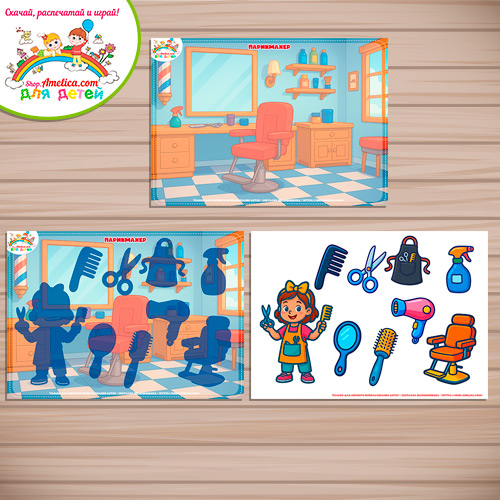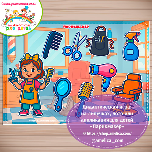 Дидактическая игра: на липучках, лото или аппликация для детей «Парикмахер» скачать для детей