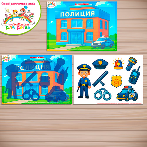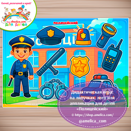 Дидактическая игра: на липучках, лото или аппликация для детей «Полицейский» скачать для детей