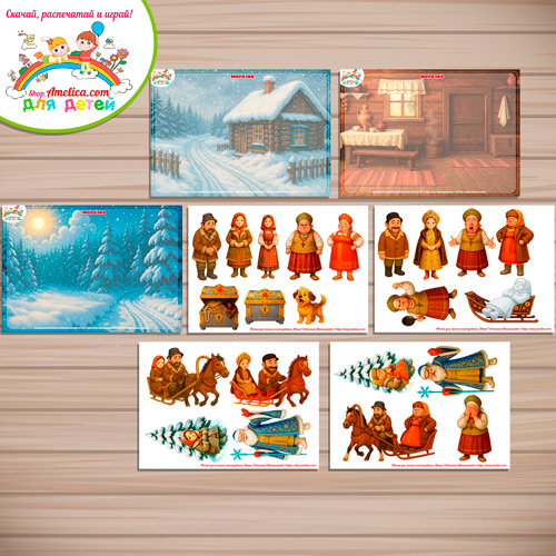 Почитайте ребенку сказку «Морозко» и положите рядом фон и всех героев. Малышу очень понравится такой «кукольный театр», ведь слушать сказку и играть намного интереснее!