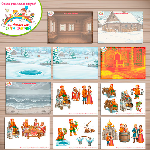 Почитайте ребенку сказку «По щучьему велению» и положите рядом фон и всех героев. Малышу очень понравится такой «кукольный театр», ведь слушать сказку и играть намного интереснее!