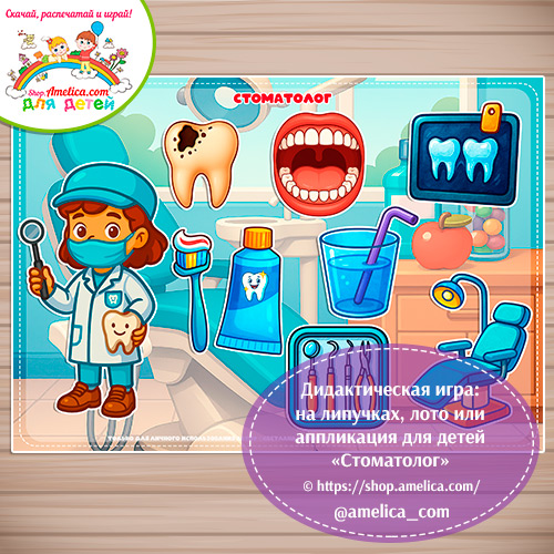 Дидактическая игра: на липучках, лото или аппликация для детей «Стоматолог» для детей .