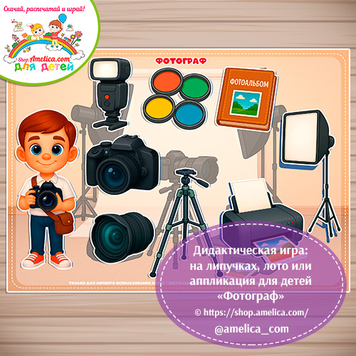 Дидактическая игра: на липучках, лото или аппликация для детей «Фотограф» скачать для детей