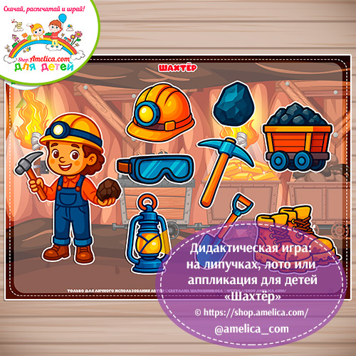 Дидактическая игра: на липучках, лото или аппликация для детей «Шахтёр»