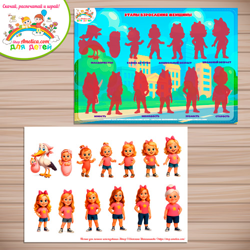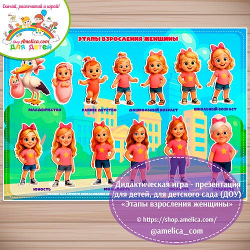 Дидактическая игра — презентация для детей «Этапы взросления человека — женщина» -2 вариант скачать для печати
