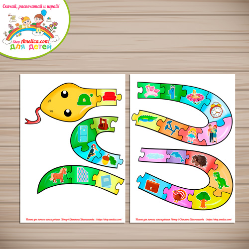 Логопедическая игра — пазлы для детей «Змейка» — Автоматизация мягкий звук Дь шаблон скачать для печати