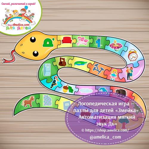 Логопедическая игра — пазлы для детей «Змейка» — Автоматизация мягкий звук Дь.