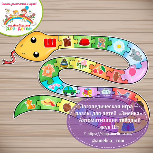Логопедическая игра — пазлы для детей «Змейка» — Автоматизация твёрдый звук Ш.