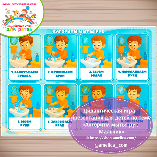 Дидактическая игра — презентация на липучках «Алгоритм мытья рук — мальчик»Дидактическая игра — презентация на липучках «Алгоритм мытья рук — мальчик»