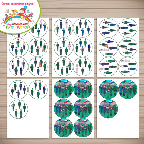 Развивающая игра ДОББЛЬ на 23 февраля «Армия России: военнослужащие» шаблон скачать для печати
