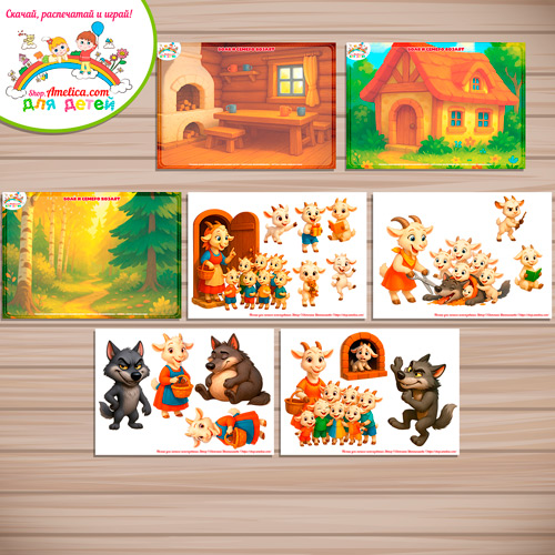 Почитайте ребенку сказку «Волк и семеро козлят» и положите рядом фон и всех героев. Малышу очень понравится такой «кукольный театр», ведь слушать сказку и играть намного интереснее!