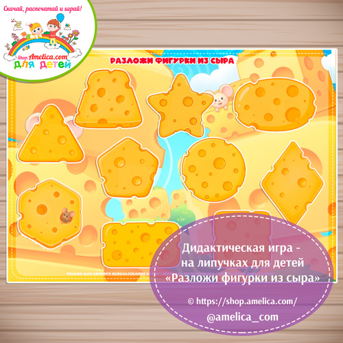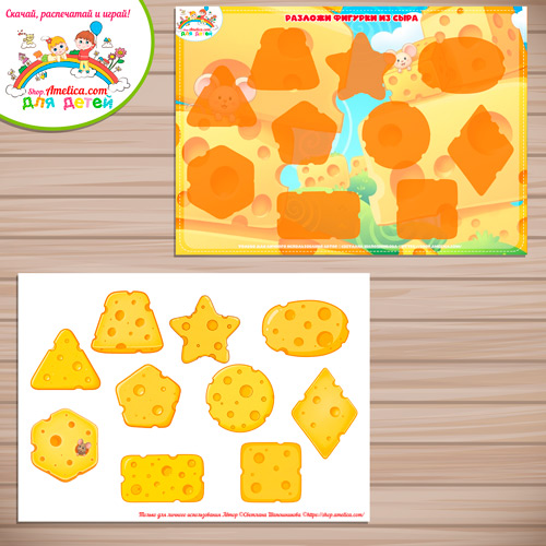 Развивающая игра для детей «Разложи фигурки из сыра» шаблон скачать для печати