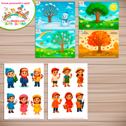 Игра — презентация для дошкольников «Дети по временам года» скачать и распечатать