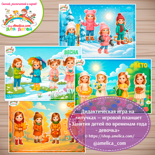 Дидактическая игра на липучках — игровой планшет для детей «Занятия детей по временам года — девочка».