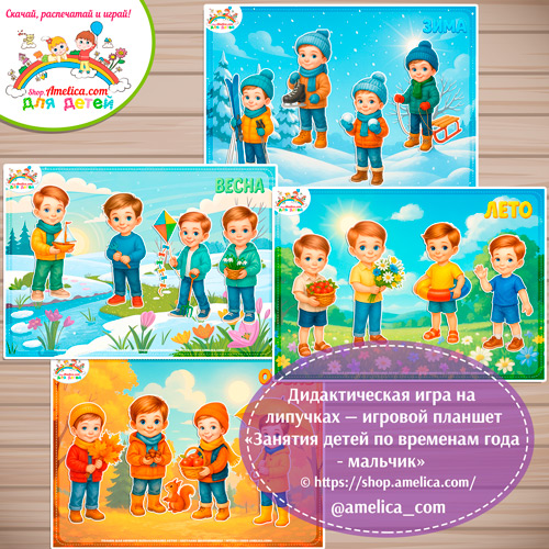 Дидактическая игра на липучках — игровой планшет для детей «Занятия детей по временам года — мальчик».
