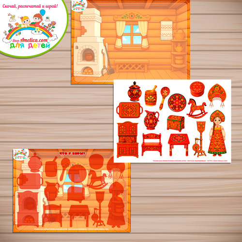 Дидактическая игра на липучках — аппликация «Что в избе у Киры? Гаютинская роспись» шаблон скачать для печати