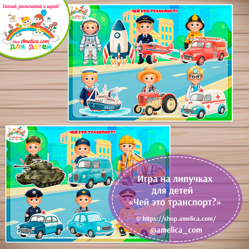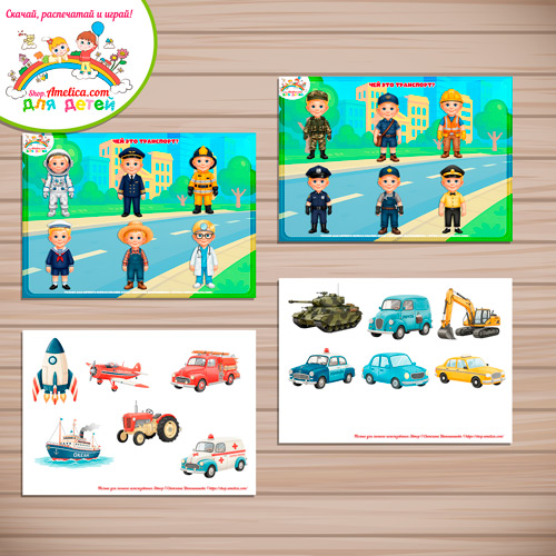 Дидактическая игра на липучках для детей «Чей транспорт?» скачать и распечатать